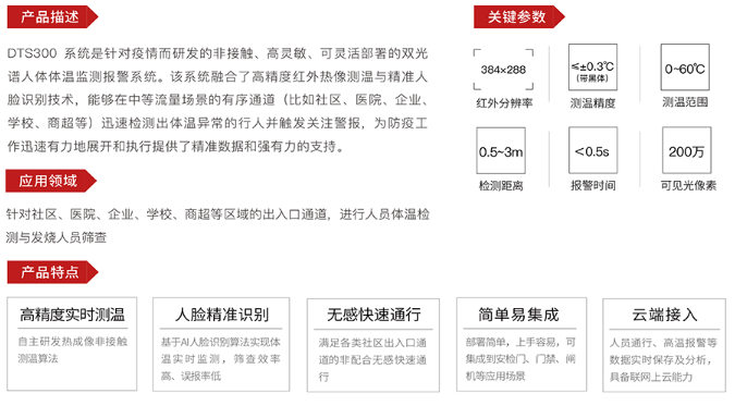 社區(qū)、醫(yī)院、企業(yè)、學校、商超等區(qū)域的出入口通道,進行人體體溫檢測與發(fā)燒人員篩查