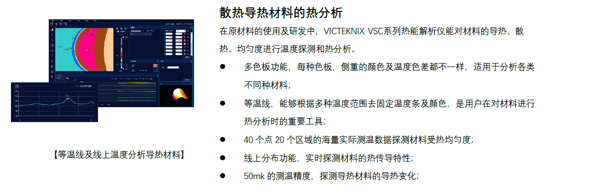 VICTEKNIX VSC系列熱能管理解析儀,結(jié)構(gòu)簡單、小巧靈活,能探測、存儲及分析物體溫度隨時間變化等數(shù)據(jù),為工程師、設(shè)計師、高校實驗員等用戶減少測試次數(shù),節(jié)省實驗時間。