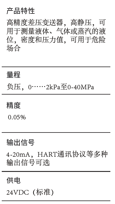 測量液體、氣體或蒸汽的液位、密度、壓力、以及流量,然后將其轉(zhuǎn)變成 4~20mA DC HART電流信號輸出。