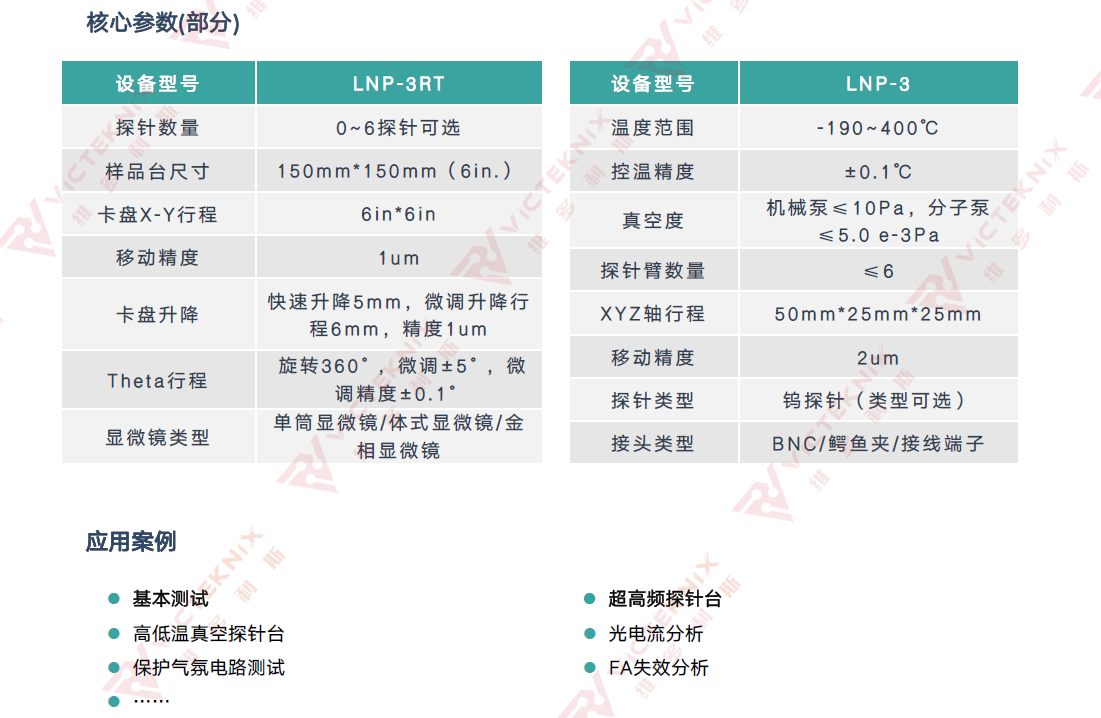 晶圓探針臺(tái)為小尺寸樣品測(cè)量電特性提供高精度可控測(cè)量環(huán)境。 探針臺(tái)可實(shí)現(xiàn)精準(zhǔn)可靠的測(cè)試與測(cè)量分析,幫助精準(zhǔn)測(cè)量和分析判斷晶圓器件的性能,包括提供材料/器件的IV/CV特性測(cè)試、LD/LED/PD的光強(qiáng)/波長(zhǎng)測(cè)試,射頻特性器件失效分析,芯片內(nèi)部線路/電極/PAD測(cè)試等技術(shù)解決方案