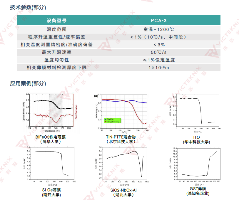 相變溫度分析儀 PCA 是根據(jù)材料相變前后光學(xué)性質(zhì)(反射光功率)有較大差異的特性,在程序控溫下,使用一束恒定功率的激光照射樣品表面,記錄反射光功率變化,形成反射光功率與溫度變化曲線,從而確定相變溫度。其能做到無損檢測,不破壞樣品,節(jié)約成本。